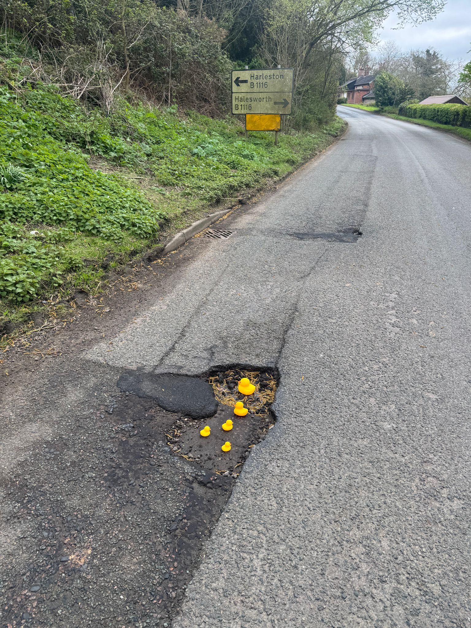 Please contact me using the form below with locations of potholes in East Depwade or where potholes have been repaired poorly, so I can visit with my plastic ducks, capture some photos, create a list of current locations and then map them. It shouldn’t be difficult for residents to report potholes and get them repaired properly and in a timely manner.